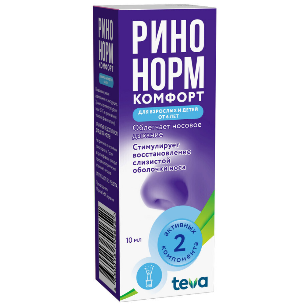 Ринонорм Комфорт 0,1 мг + 5 мг 10 мл 90 доз спрей назальный