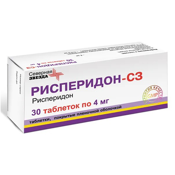 Действующее вещество: рисперидон - 4 мг;