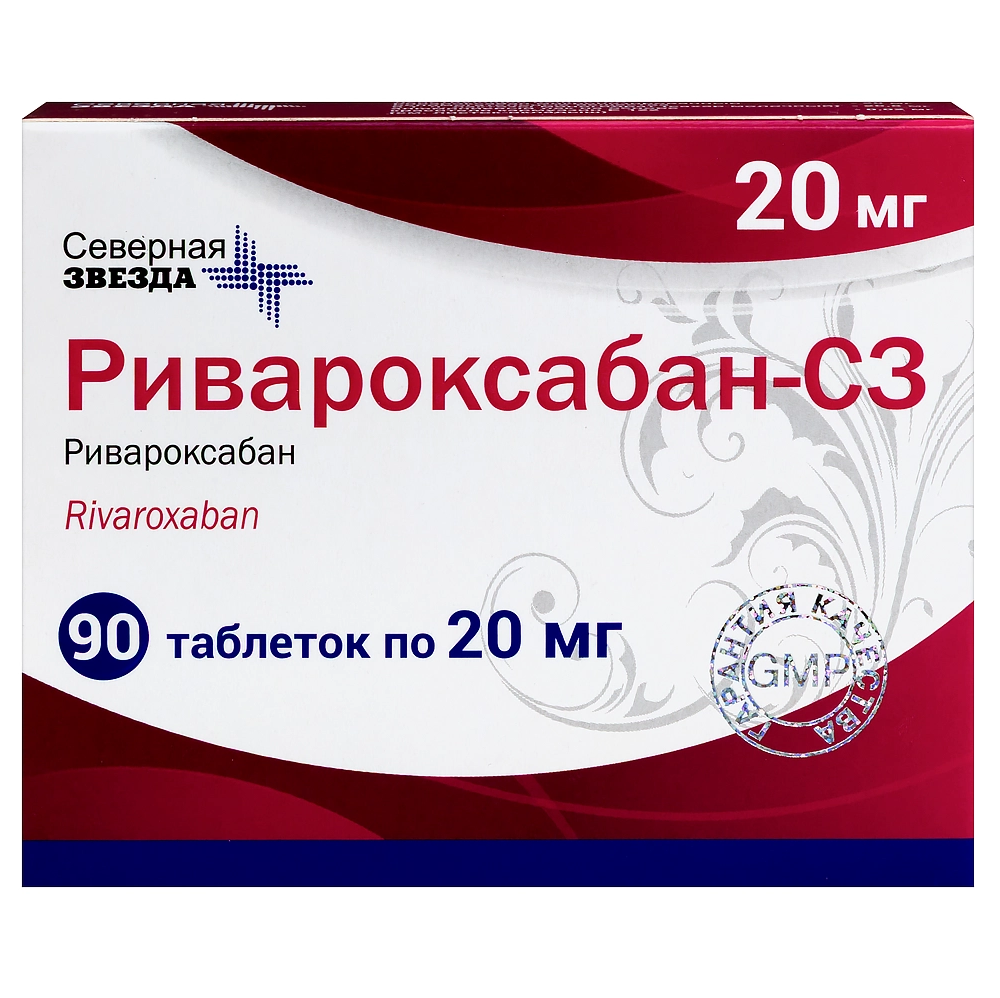 Рекомендуемая доза: 1 таблетка препарата Ривароксабан-СЗ 20 мг 1 раз в день.