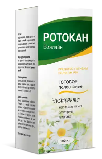 Готовое полоскание Ротокан Виалайн не содержит спирта, поэтому не оказывает раздражающего действия на слизистую оболочку полости рта и не вызывает ощущения сухости во рту.