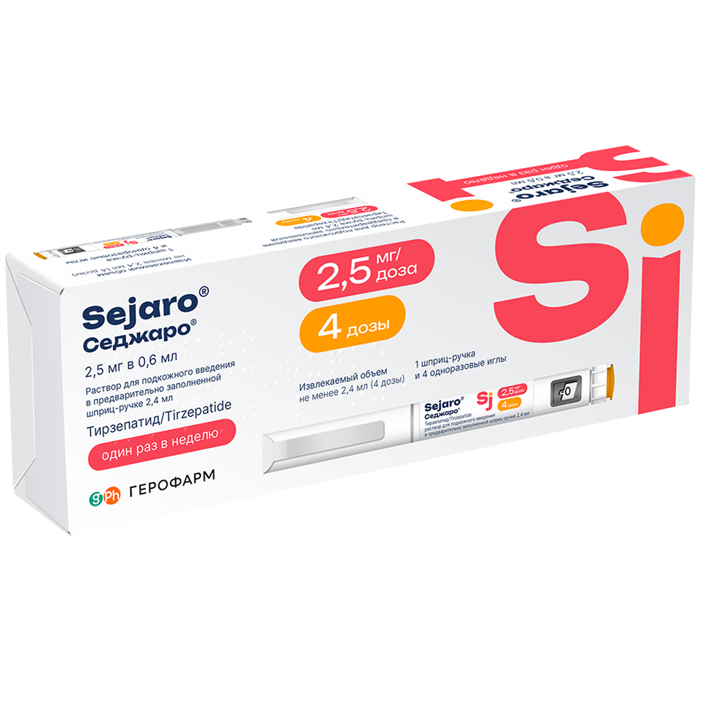 Инструкция по применению Седжаро 2,5 мг/доз 2,4 мл 1 шт раствор для подкожного введения шприц-ручка + иглы одноразовые 4 шт