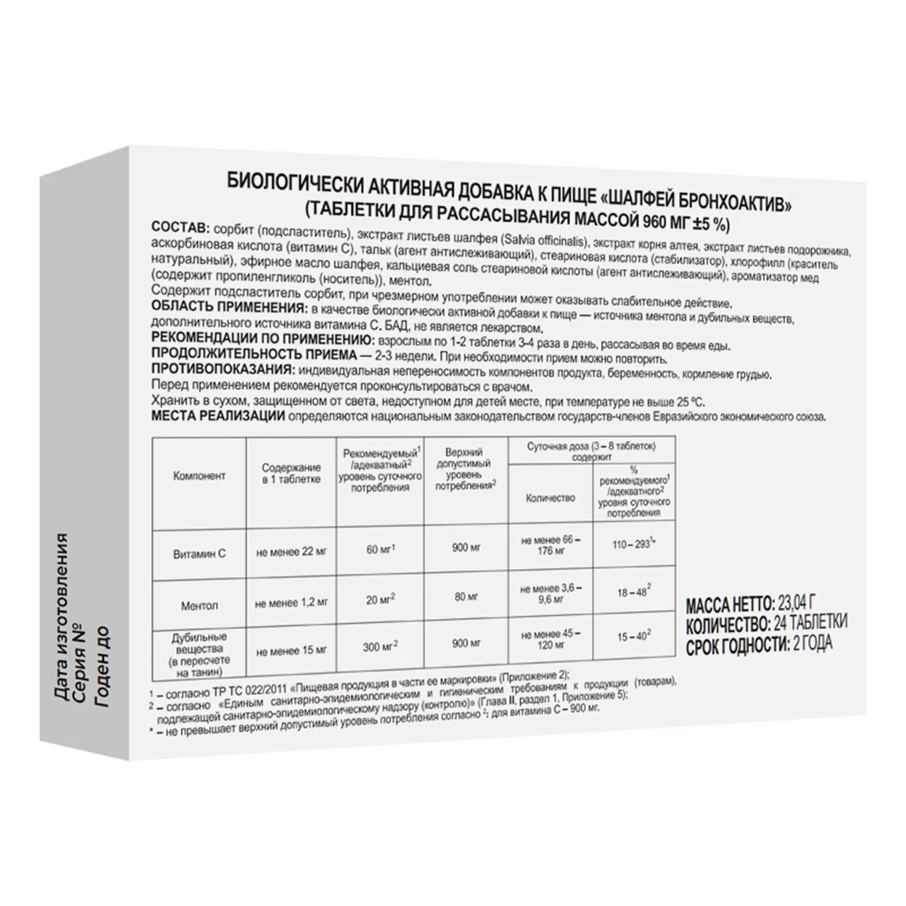 Действующее вещество: экстракт листьев шалфея, экстракт корня алтея, экстракт листьев подорожника, аскорбиновая кислота (витамин С).