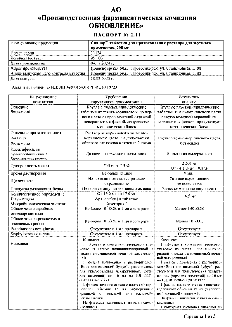 Сиалор Реневал 2% 10 мл набор для приготовления раствора таблетка растворитель и флакон с крышкой-пипеткой