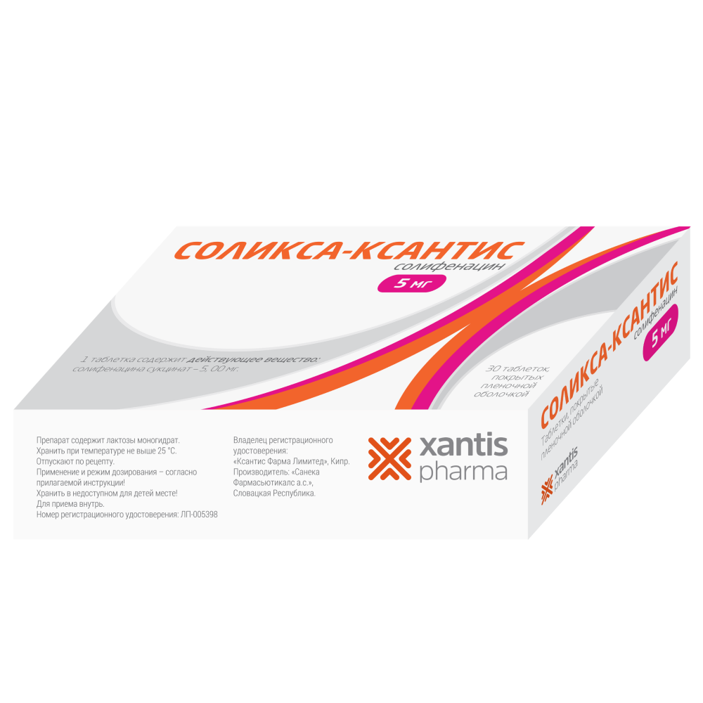 При совместном применении солифенацина с кетоконазолом или терапевтической дозой другого сильного ингибитора изофермента CYP3A4, такого как нелфинавиритраконазол, максимальная суточная доза препарата Соликса-Ксантис не должна превышать 5 мг.