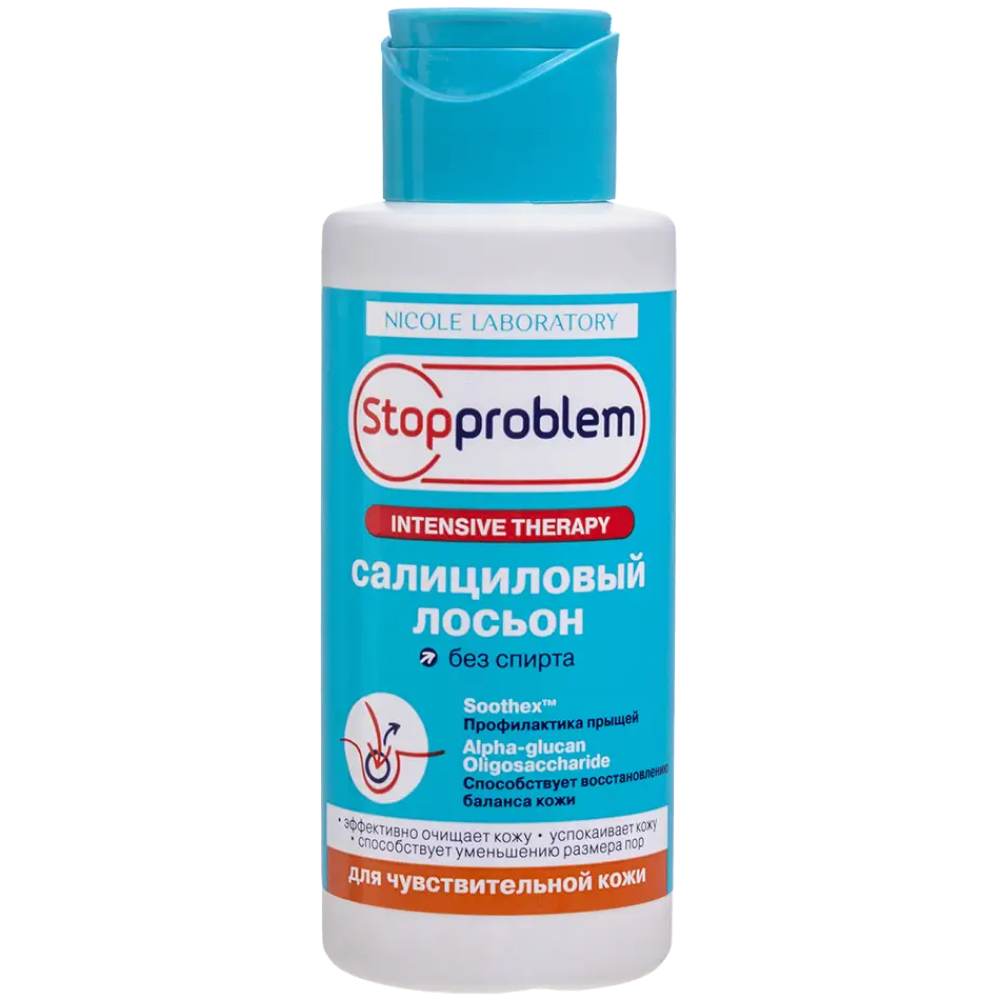 Для чувствительной кожи в линейке косметических средств Stopproblem присутствует деликатный лосьон, позволяющий очистить кожу от загрязнения и макияжа, а также предотвратить появление прыщиков и раздражений. В основе лосьона лежит комплекс фито-экстрактов - ромашки, череды, алоэ, мяты, а также компонент Evermat, который нормализует работу сальных желез. Лосьон способствует регенерации кожи, в том числе следов от акне и постакне.