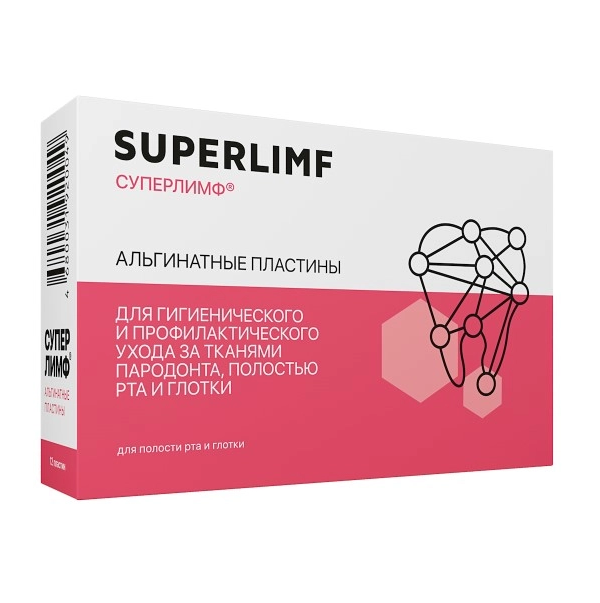 Альгинатные пластины «Суперлимф®» применяются местно для гигиенического и профилактического ухода за тканями пародонта, полостью рта и глотки, в том числе: