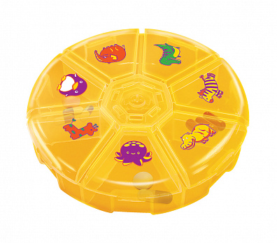 Откройте крышки отделений; разложите витамины или лекарства по отделениям; закройте крышки.