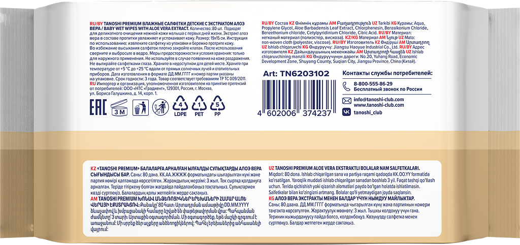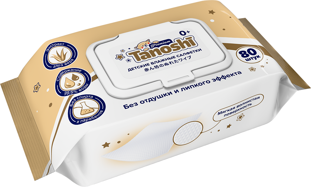 Tanoshi Премиум 80 шт салфетки влаж для детей экстракт алоэ вера