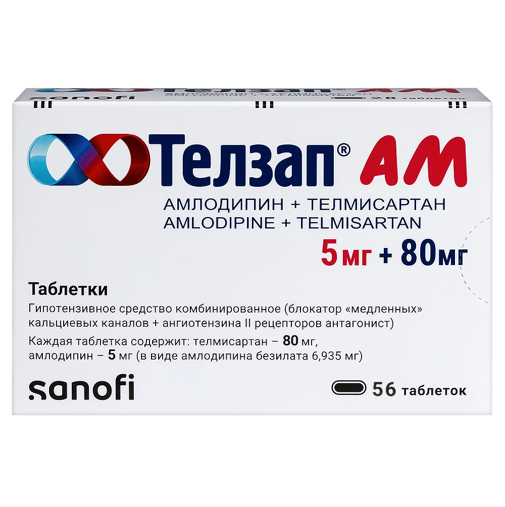 Телзап АМ 5 мг + 80 мг 56 шт таблетки ⭐ купить дешево в онлайн-аптеке Ваша №1 | Москва и Московская область