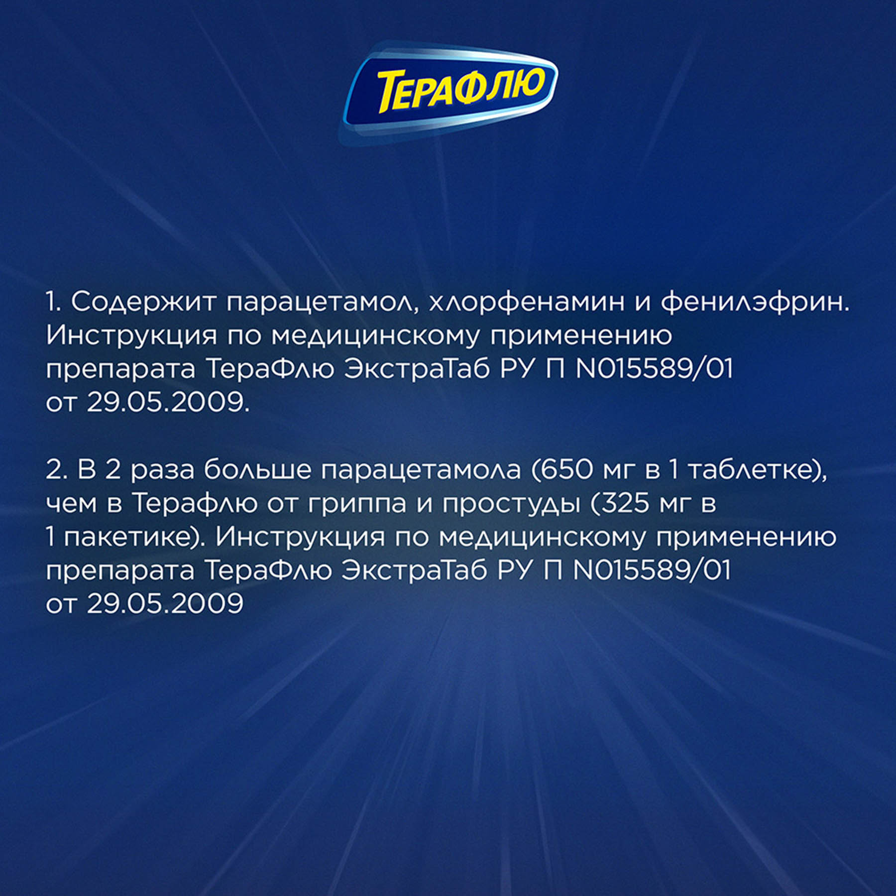 Активные вещества: парацетамол 650.0 мг, хлорфенамина малеат 4,0 мг, фенилэфрина гидрохлорид 10,0 мг