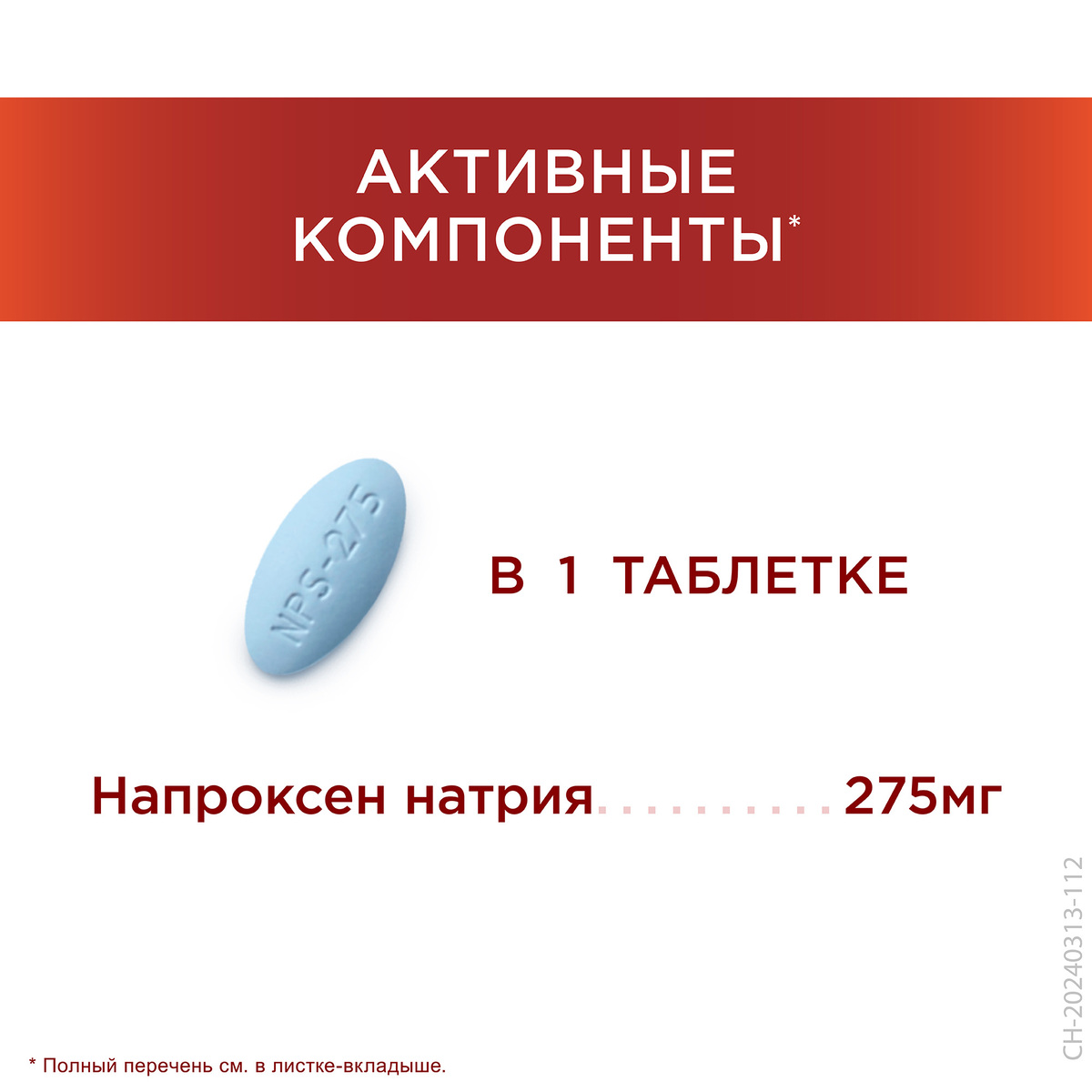 Каждая таблетка содержит 275 миллиграмм напроксена натрия.