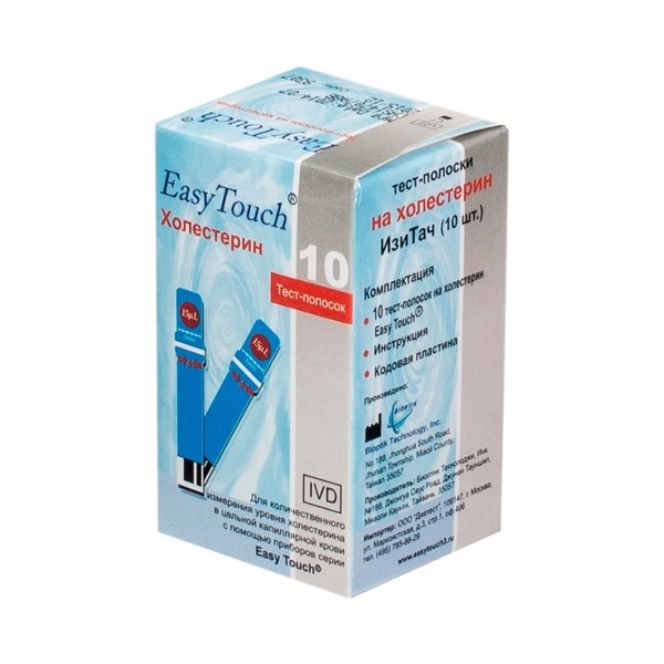 Тест-полоски EasyTouch на холестерин предназначены для использования только с образцом свежей капиллярной цельной крови
