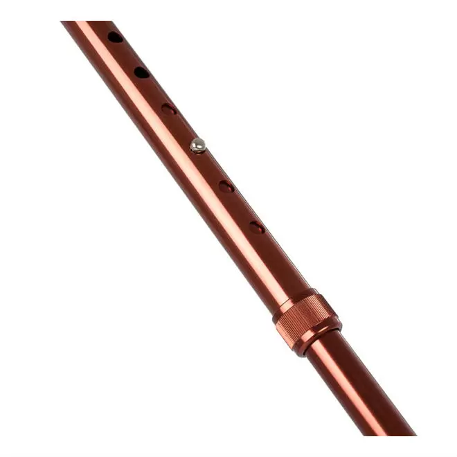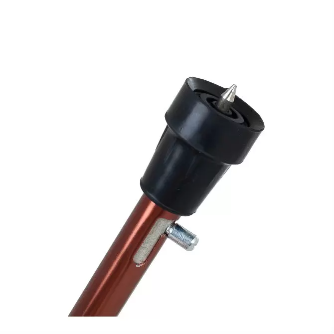 Трость имеет телескопическую конструкцию и регулируется по высоте. Кнопочный замок и фиксирующее кольцо надежно закрепляют трость на необходимом уровне.