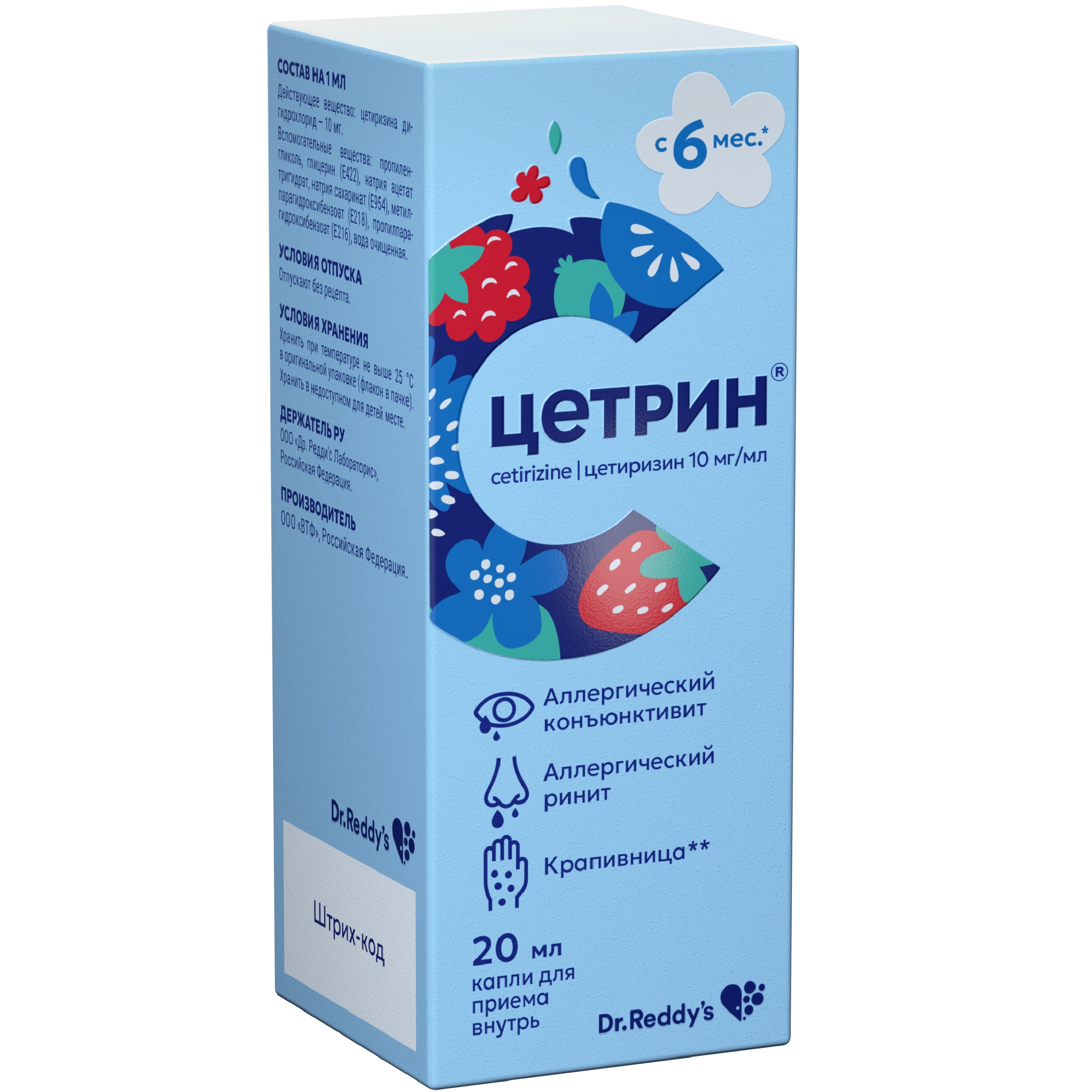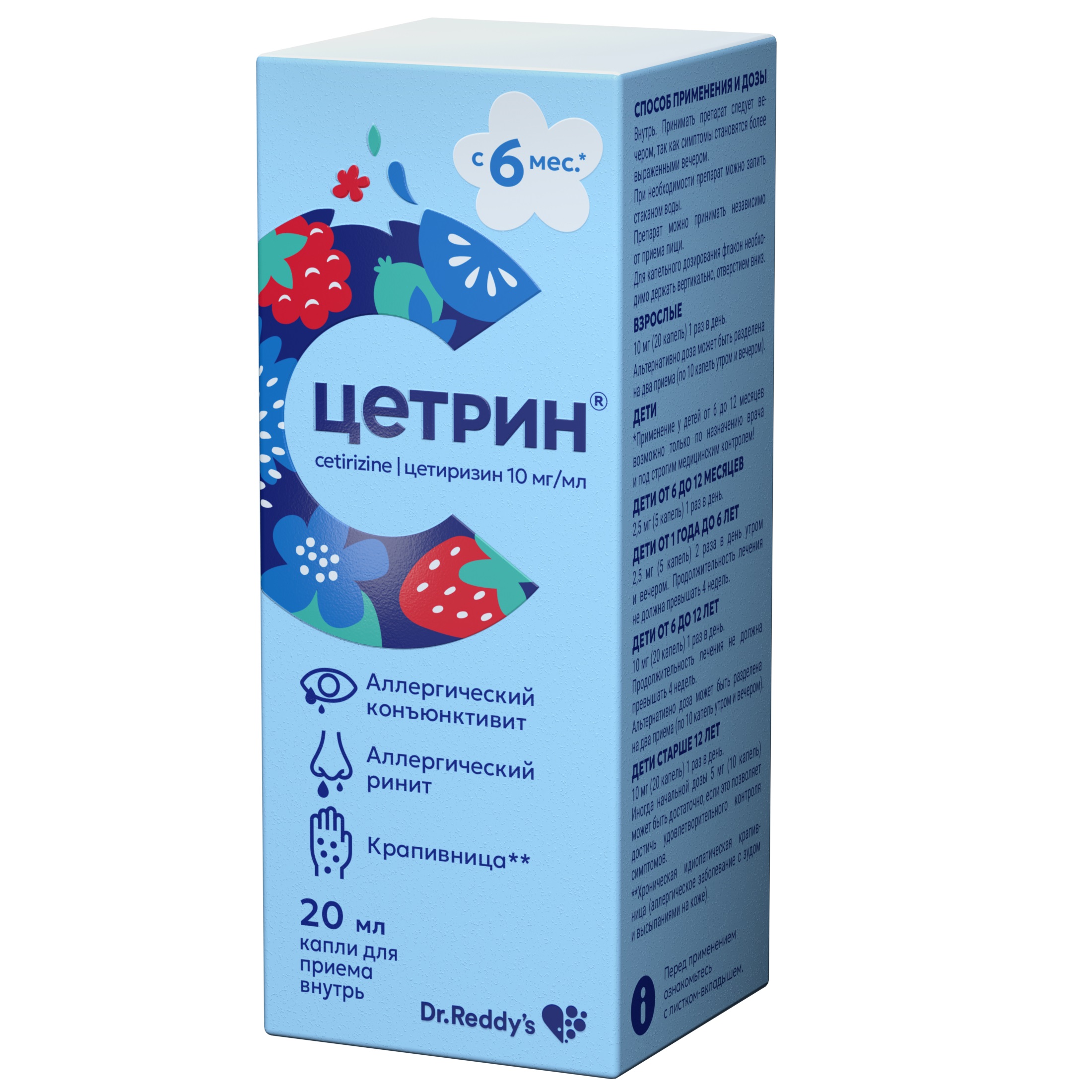 Если у Вас возникают какие-либо нежелательные реакции, проконсультируйтесь с врачом, работником аптеки или медицинской сестрой. Данная рекомендация распространяется на любые возможные нежелательные реакции, в том числе на не перечисленные в листке-вкладыше.Препарат Цетрин® применяется у взрослых и детей с 6 месяцев для облегчения: