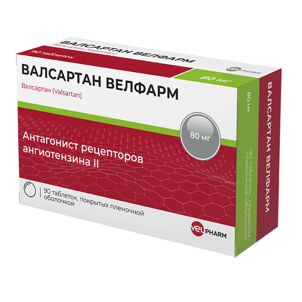 ВАЛСАРТАН ВЕЛФАРМ, 80 мг, таблетки, покрытые пленочной оболочкой