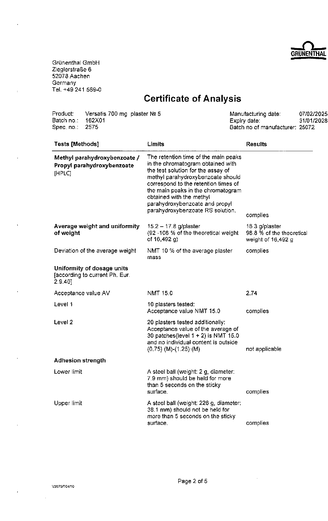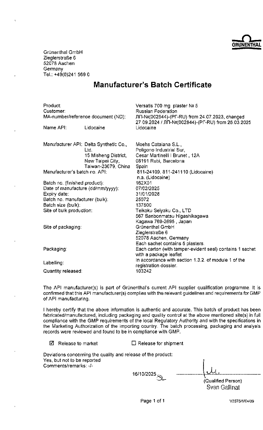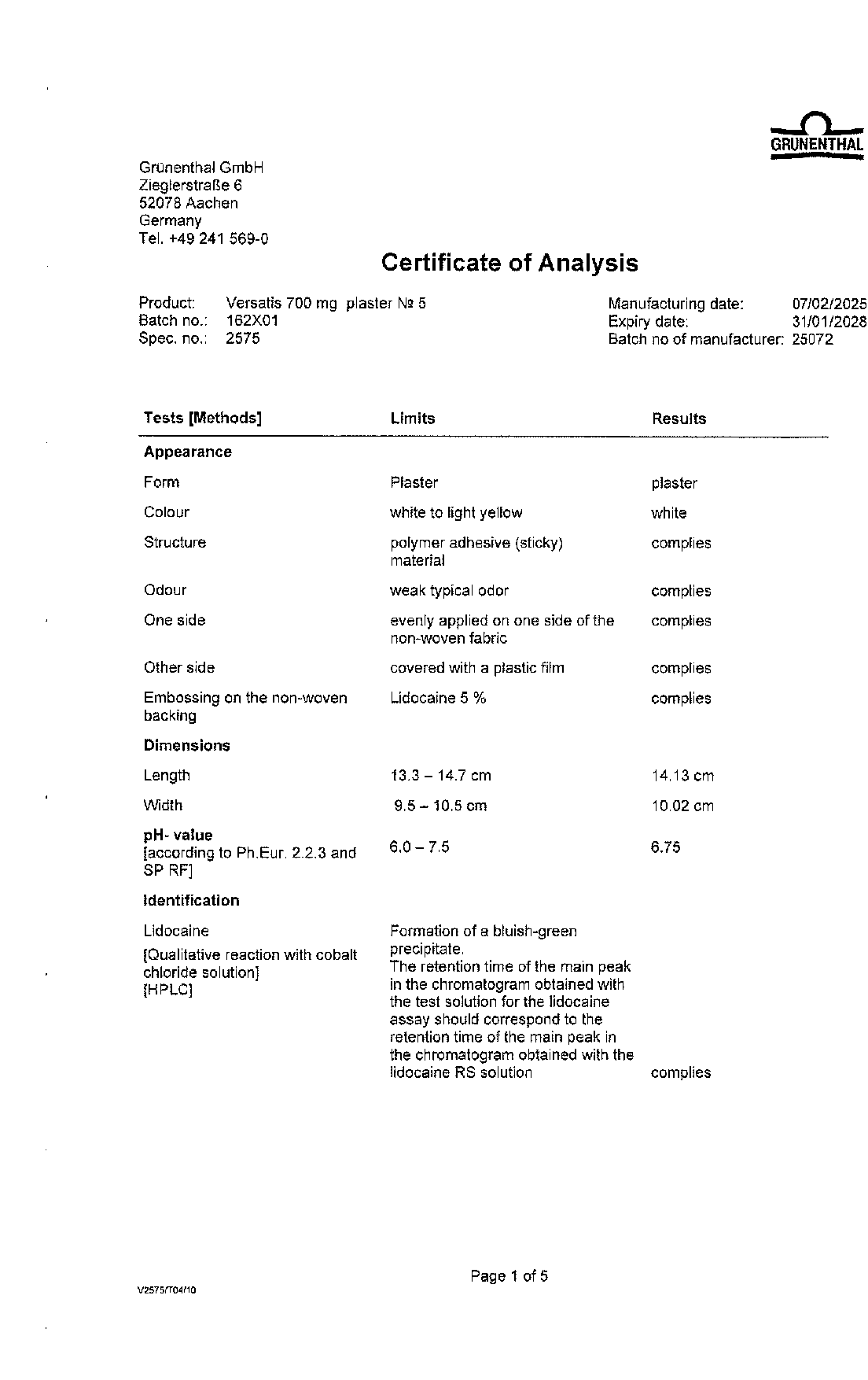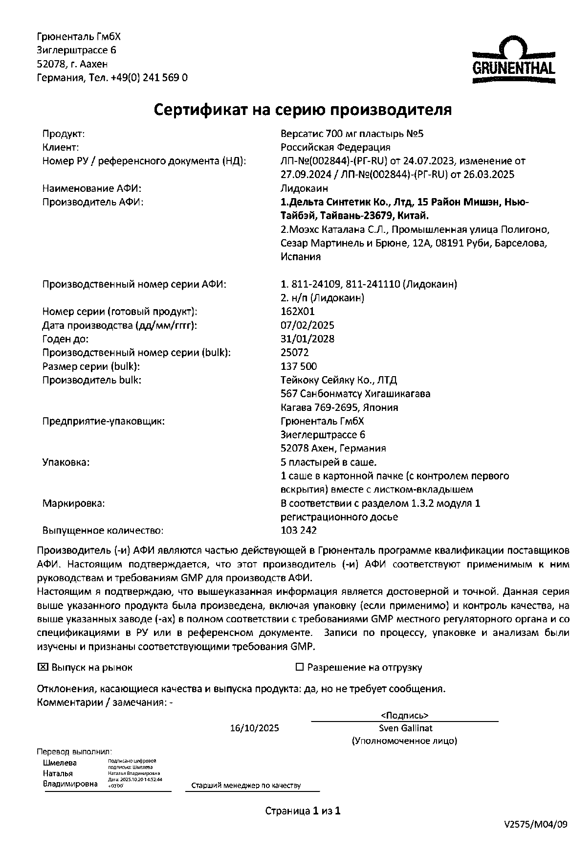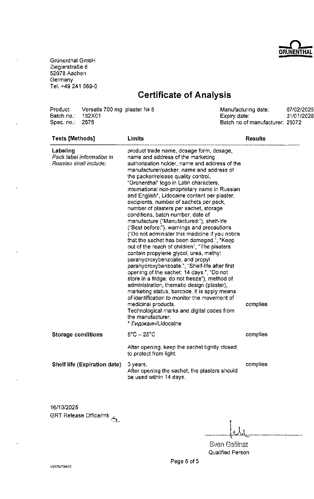 Сертификаты и лицензии “Версатис 5 шт пластырь саше”