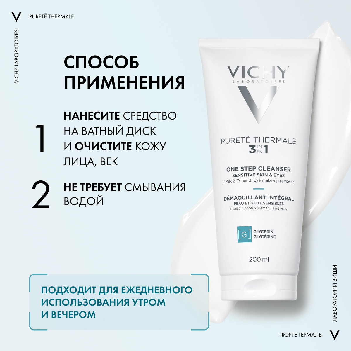 Vichy Purete Thermale Démaquillant intégral peau sensible 3 en 1 эффективно убирает загрязнения, себум и косметику. Мягкая и эффективная формула справляется с водостойким макияжем и не раздражает эпидермис. Ваша кожа становится нежной и эластичной, обретает сияющий вид, наполняется жизненной энергией . Сливочная текстура, обогащенная натуральными маслами, сочетает свежесть лосьона и мягкость молочка. Vichy Purete Thermale Démaquillant intégral peau sensible 3 en 1 не оставляет жирной пленки на поверхности дермы, а его ультрамягкая формула идеальна для чувствительной кожи и слизистой глаз.
