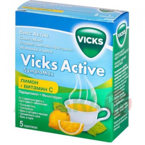 Инструкция по применению Викс Актив СимптоМакс 5 г 5 шт порошок для приготовления раствора для приема внутрь лимон