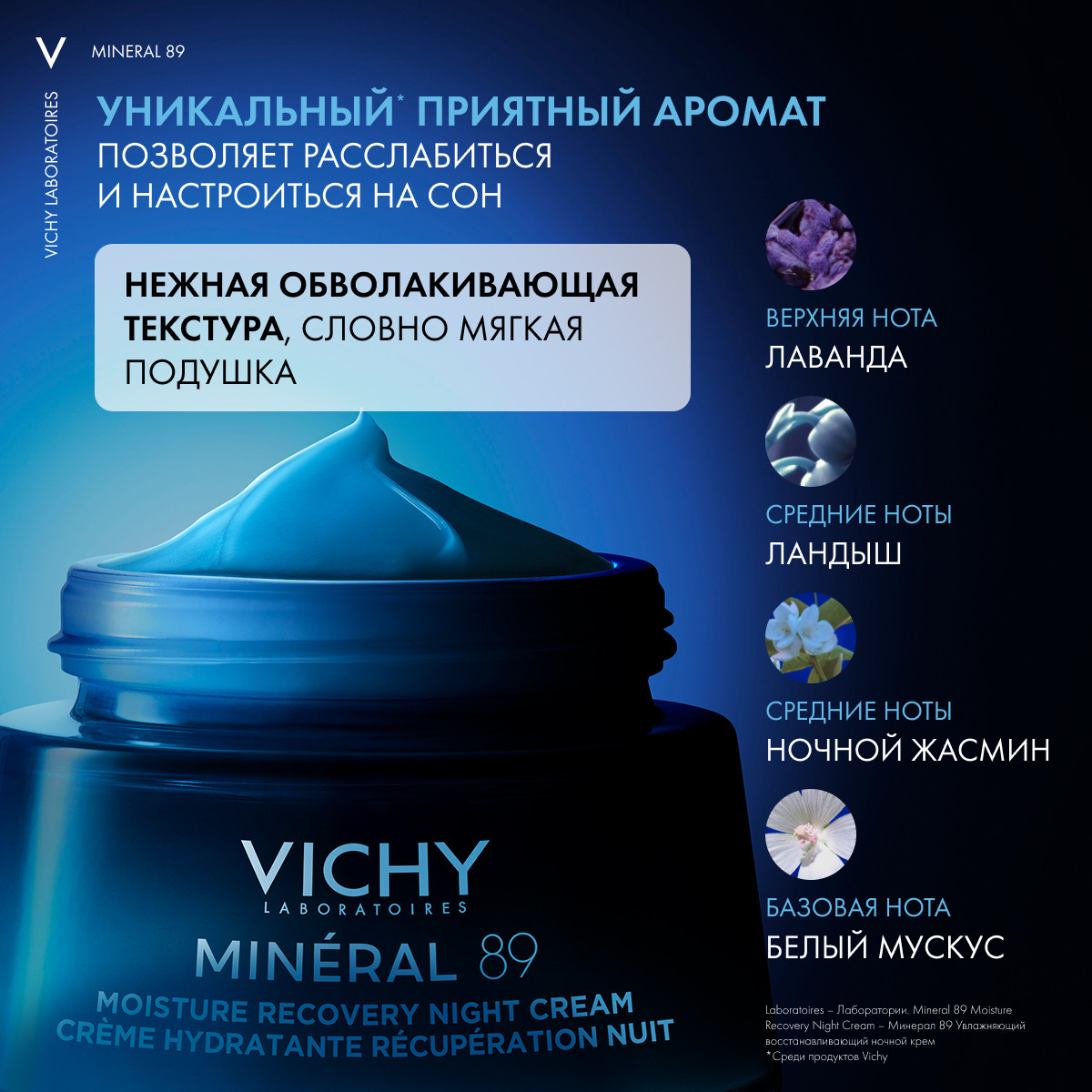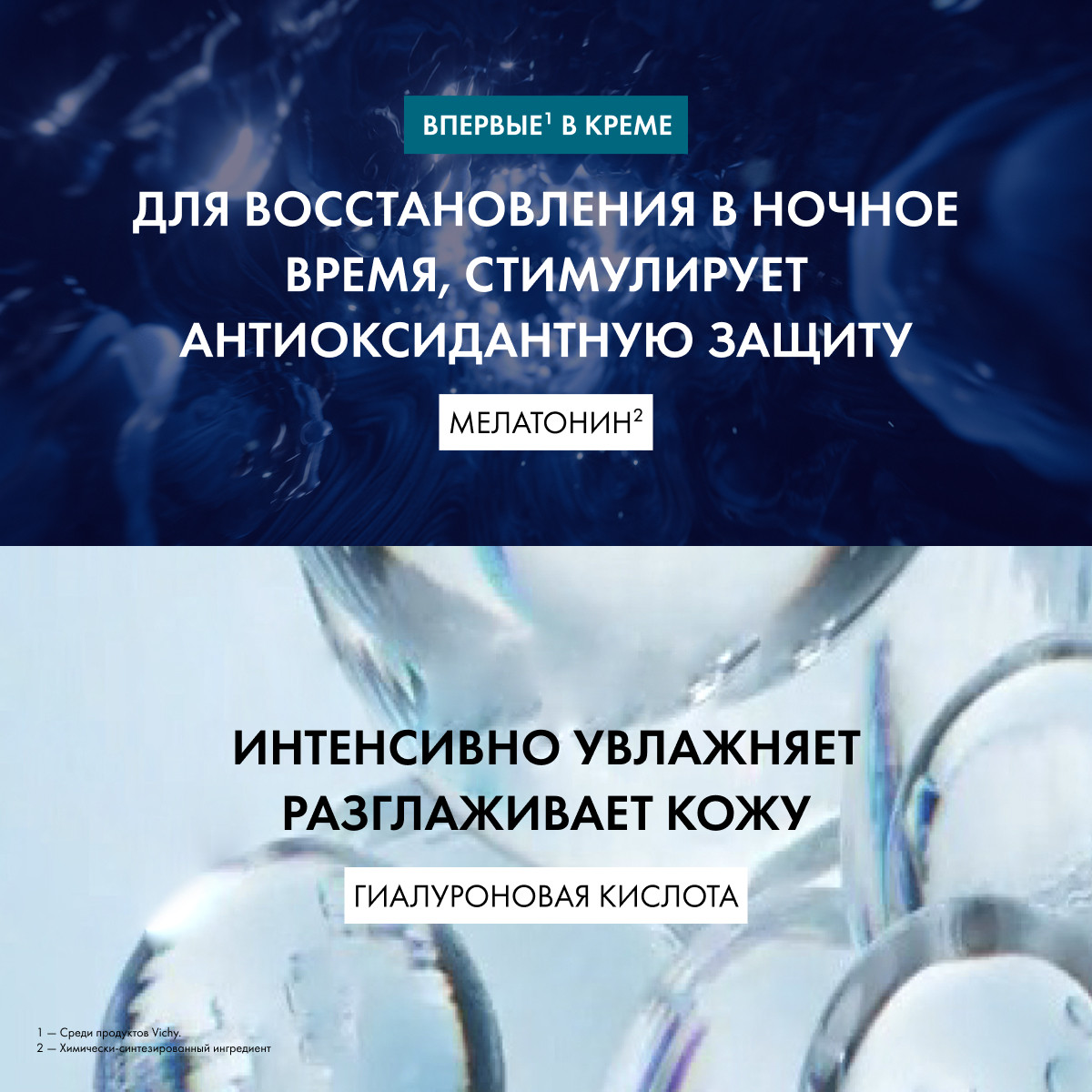 Инновация среди продуктов Vichy – увлажняющий восстанавливающий ночной крем Mineral 89 с силой чистого мелатонина.*
