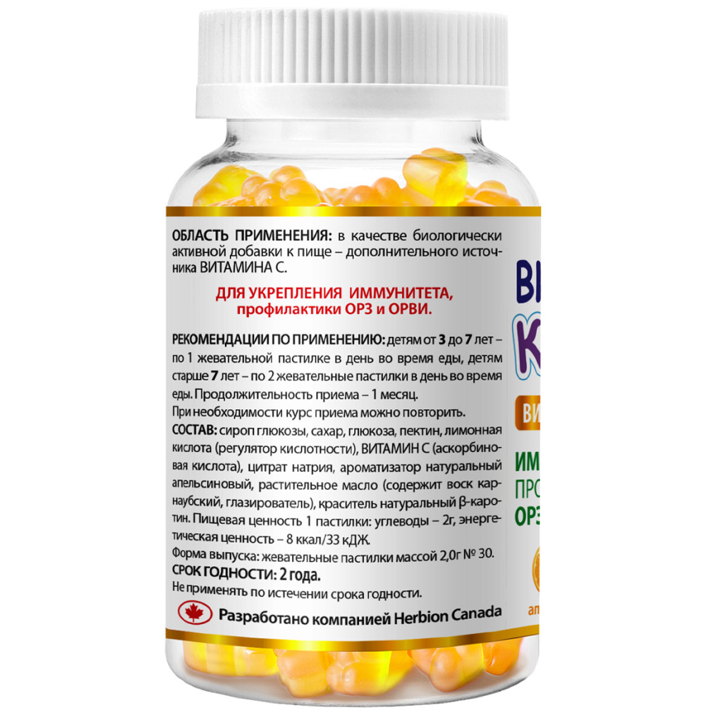 Рекомендуется в качестве биологической добавки к пище, которая является дополнительным источником витамина С. Для детей от 3-х лет.