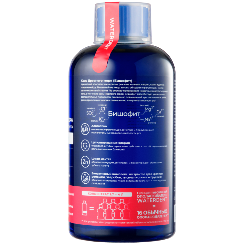 Соль Древнего моря (Бишофит) - природный комплекс минералов (магния, кальция, натрия, калия и других соединений), добываемый из недр земли, обладает укрепляющим и антисептическим свойствами. По составу превосходит известные аналоги: морскую соль, в том числе соль Мертвого моря. Бишофит способствует уменьшению воспалительных процессов, снижению повышенной чувствительности зубов, реминерализации эмали и повышению иммунитета полости рта.
