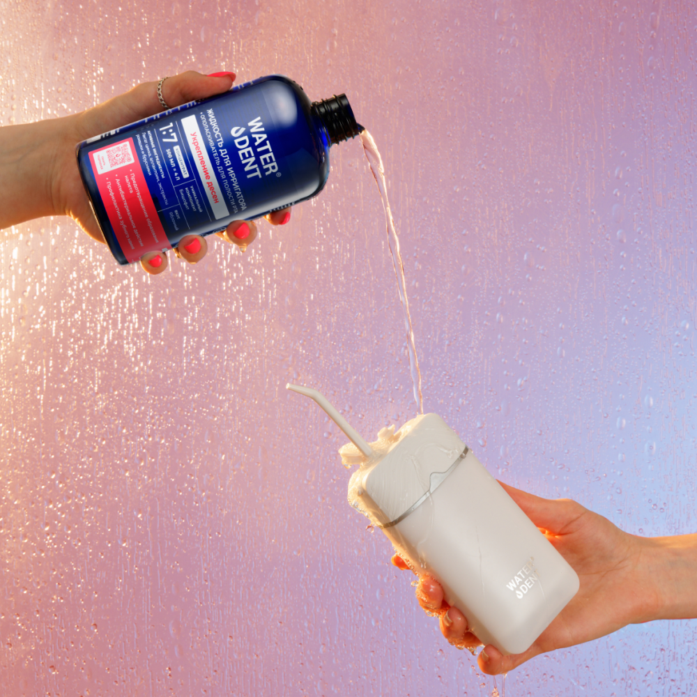 Использовать вместе с ирригатором или как ополаскиватель для ежедневного ухода за полостью рта, а также в качестве эффективного средства для очищения брекет-систем, имплантов и зубных протезов.