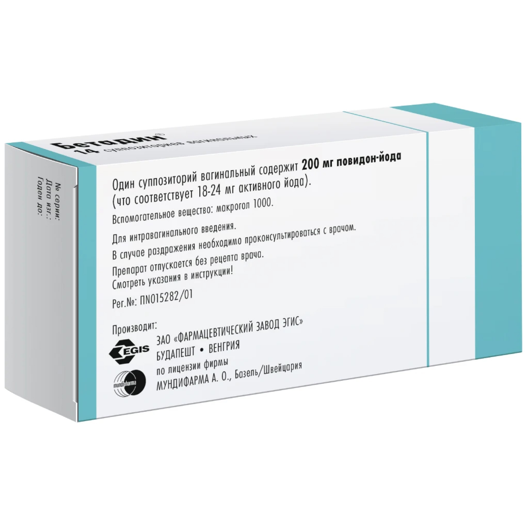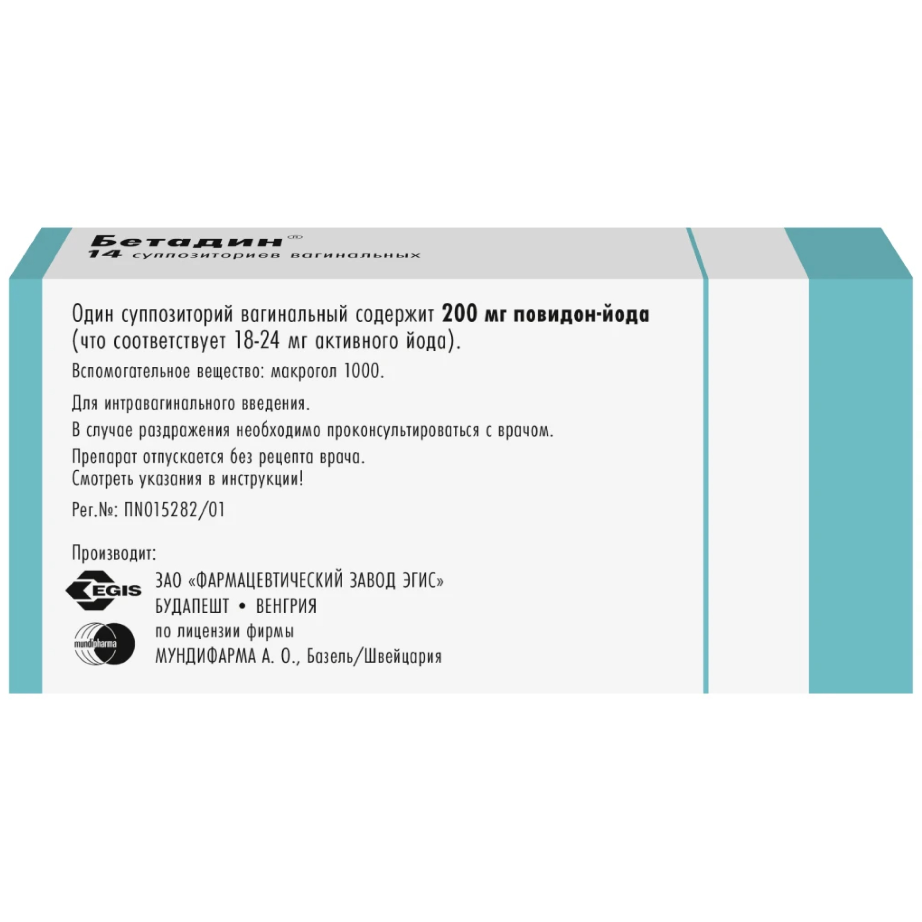Бетадин 200 мг 14 шт суппозитории вагинальные