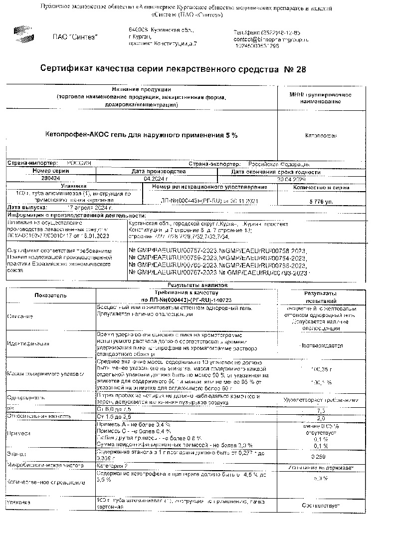 Кетопрофен 2,5% 30 г гель для наружного применения