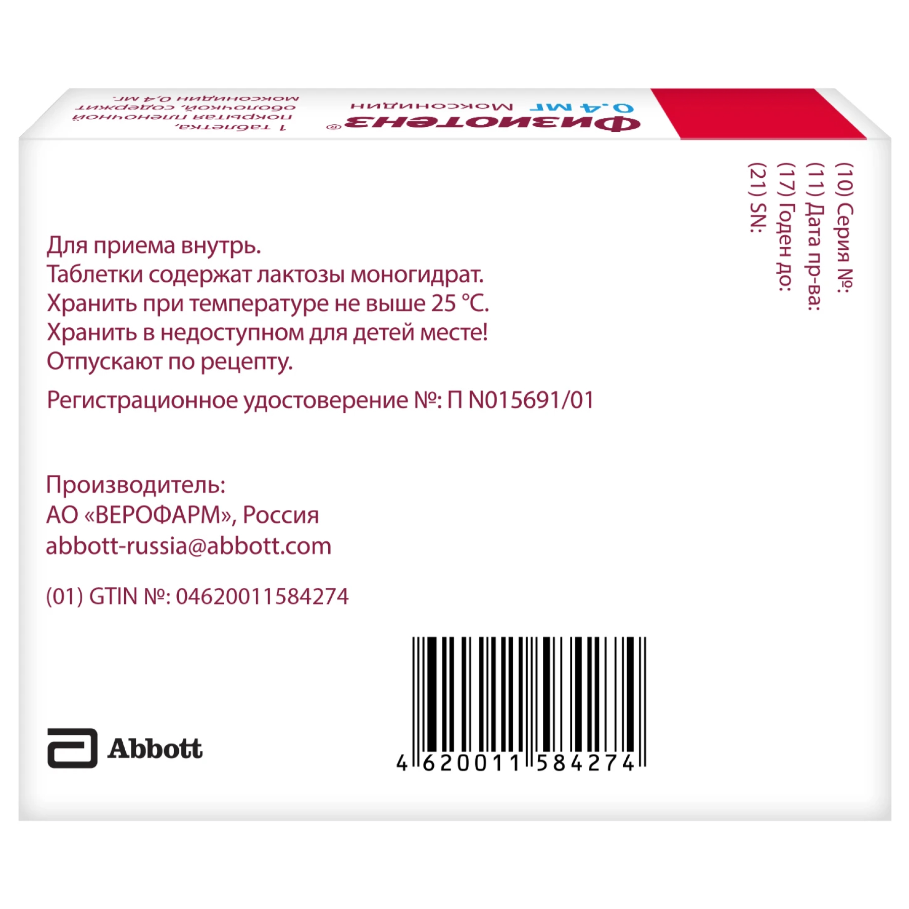 Физиотенз 0,4 мг 28 шт таблетки покрытые пленочной оболочкой