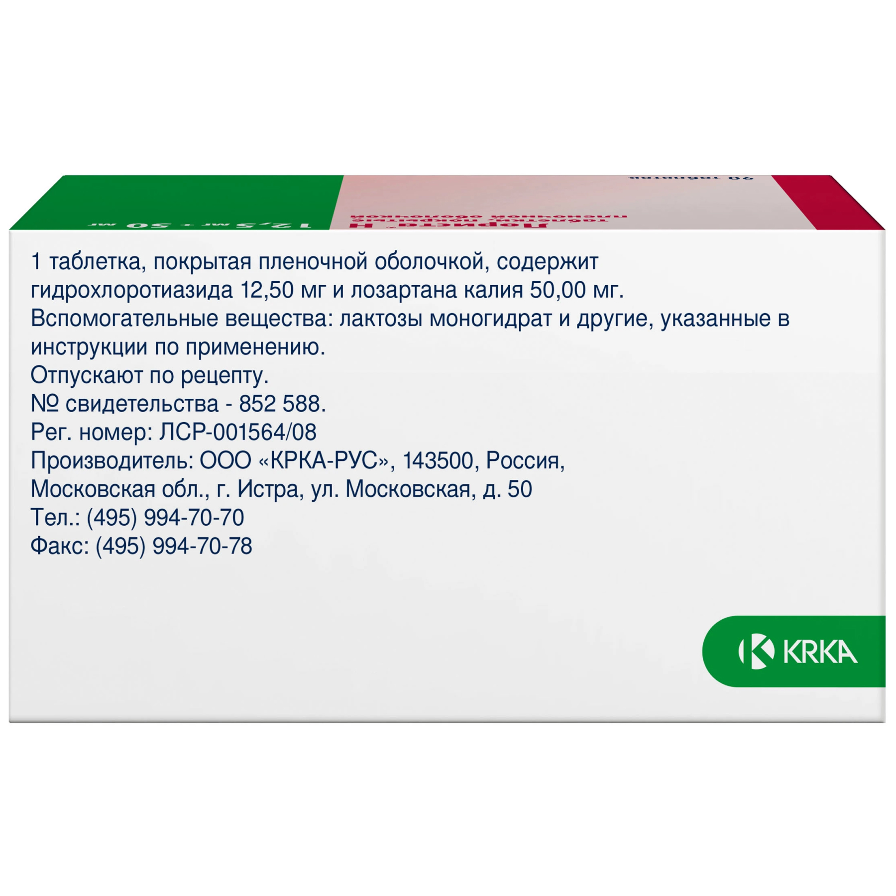 Лориста Н 12,5 мг + 50 мг 60 шт таблетки покрытые пленочной оболочкой