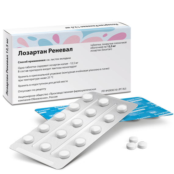 Лозартан Реневал 12,5 мг 30 шт таблетки покрытые пленочной оболочкой