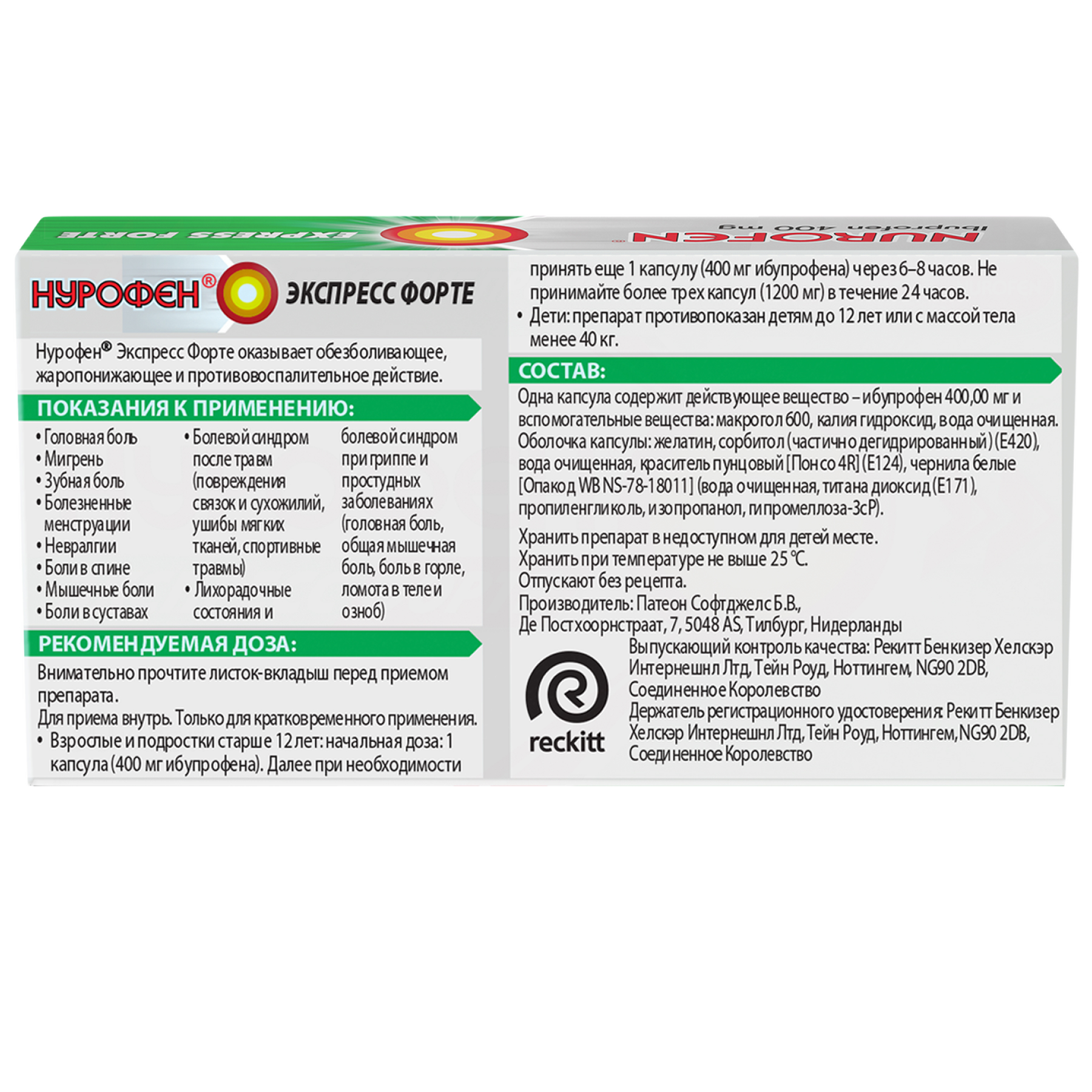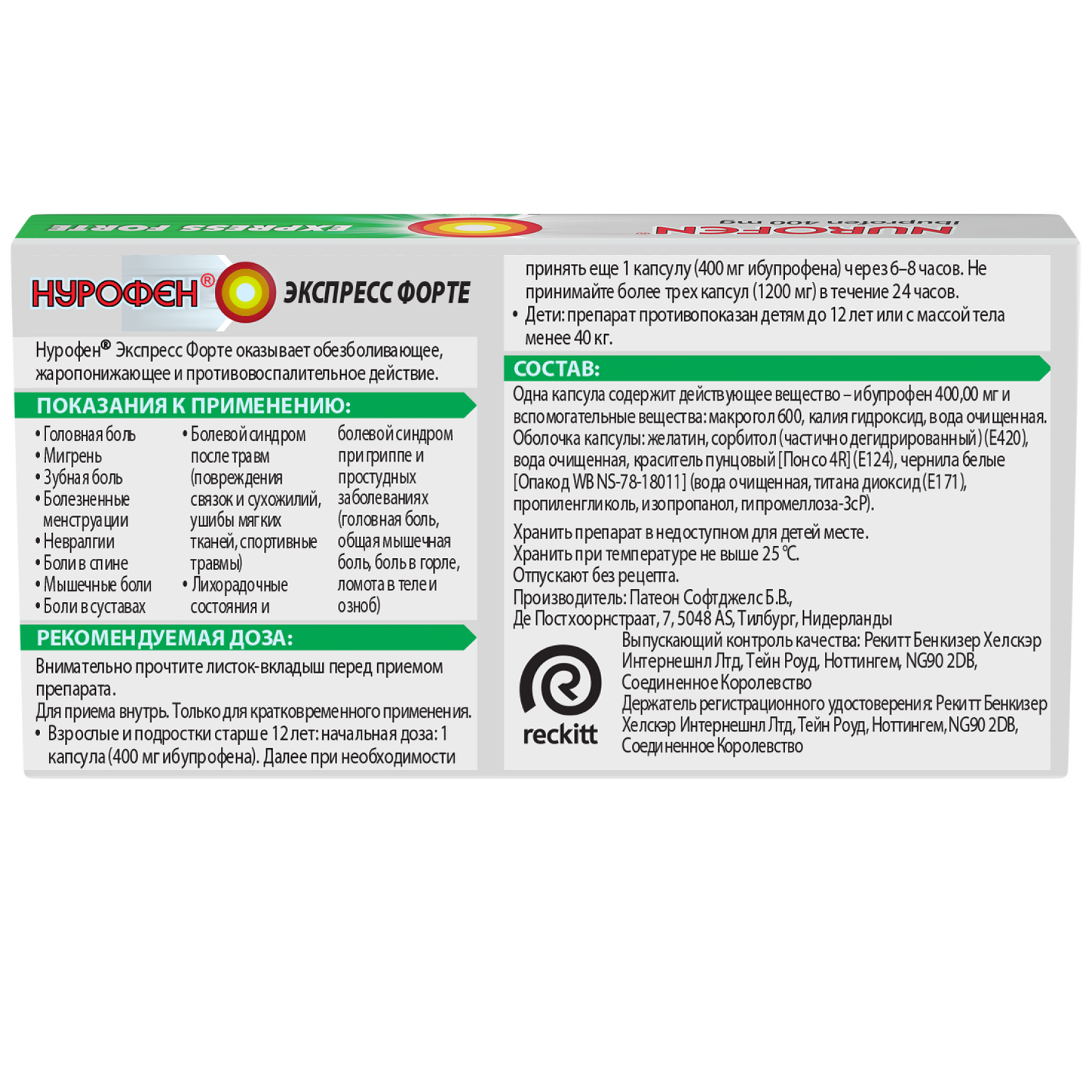 Нурофен Экспресс Форте 400 мг 20 шт капсулы